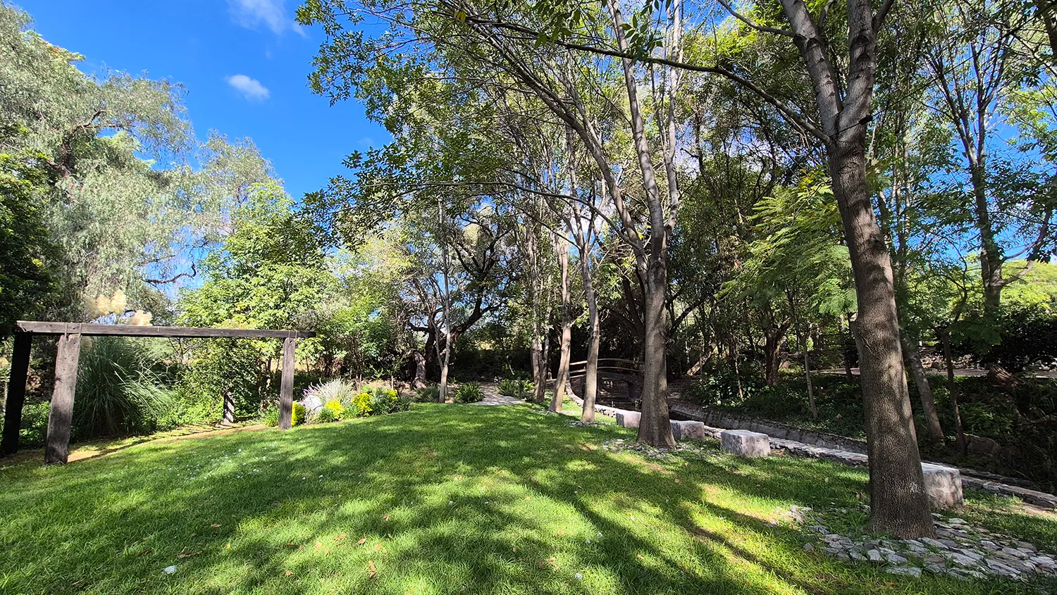 El lienzo perfecto para tu celebración. Un jardín moderno y versátil con capacidad de 100 a 400 personas, rodeado de naturaleza y diseñado para montajes espectaculares.