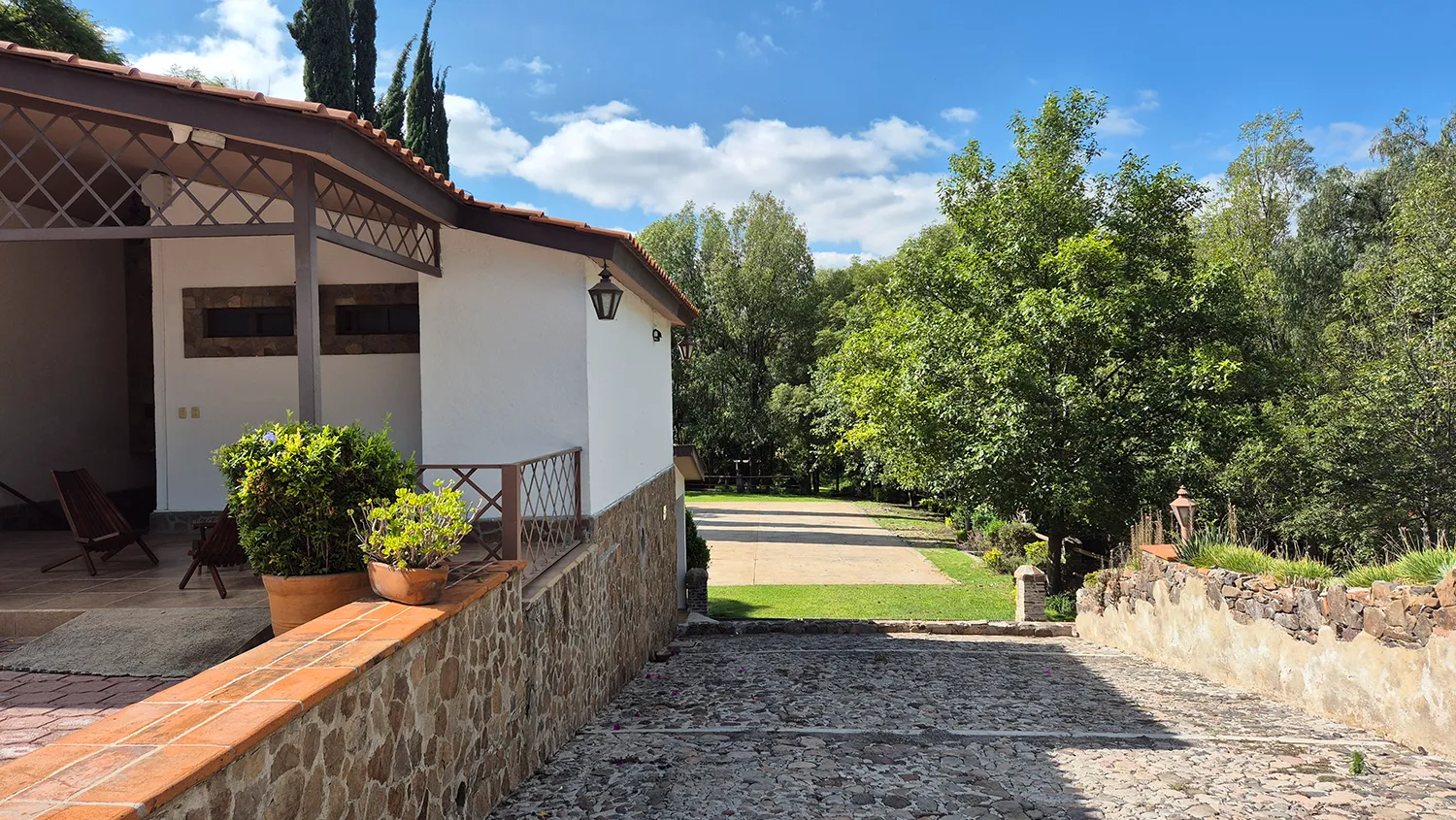El corazón de tu experiencia de estancia. Un hogar exclusivo para 13 a 16 huéspedes, con 4 habitaciones, 4 baños completos, sala con chimenea, comedor, cocina equipada y terraza techada. No es un hotel, es tu casa.